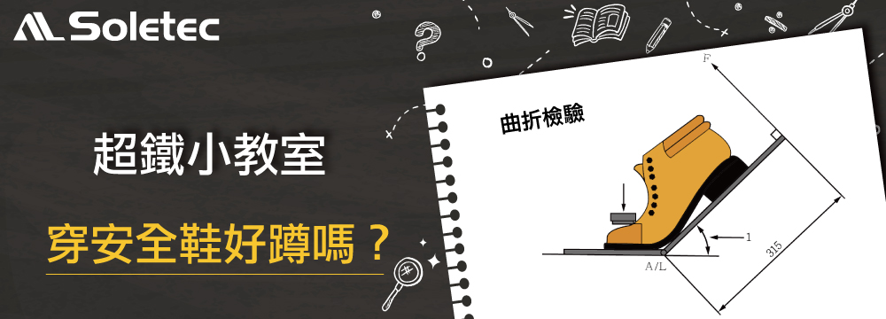 CNS20345安全鞋檢驗中有一個檢驗滿有趣的,耐撓曲性測試有點像是你的安全鞋可以蹲幾次測驗!?要通過30000次喔!30000次是什麼概念呢?相當於,每個月工作22天,每天蹲下100次這樣反覆一年~