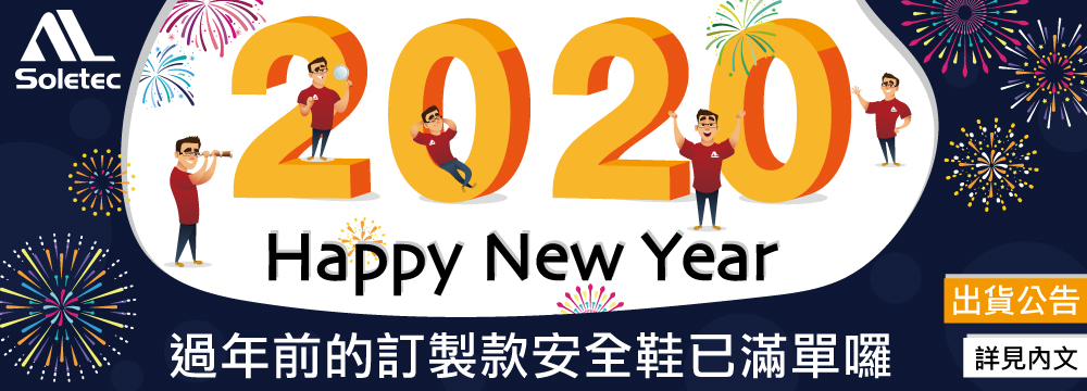 超鐵安全鞋新聞 Soletec超鐵安全鞋 – 109年出貨公告 莊超鐵 2019-12-30 在〈Soletec超鐵安全鞋 – 109年出貨公告〉中尚無留言 Happy New Year ~~🎊🎏🎉目前訂製款安全鞋已經滿單囉接下來的『訂製款安全鞋』都要等到年後才會排單製作 年假前最後出貨日:109.1.20 謝謝鐵粉對超鐵安全鞋的支持❤️ 相關出貨公告